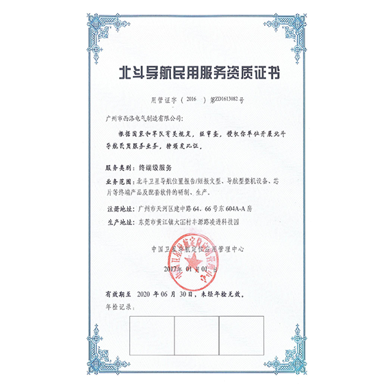北斗导航民用终端级服务资质