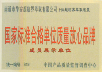 国家标准合格单位质量放心品牌