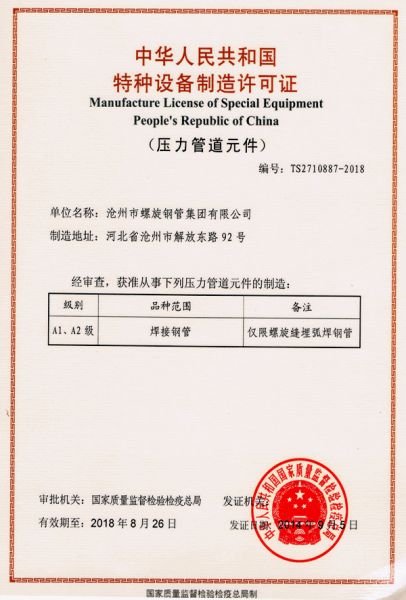 特种设备制造许可证