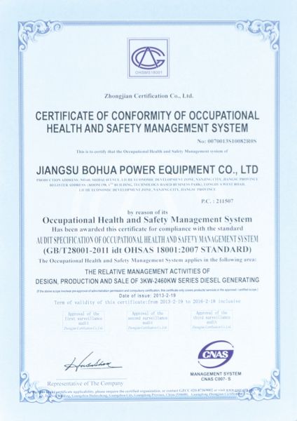 职业健康安全管理体系认证证书-中文